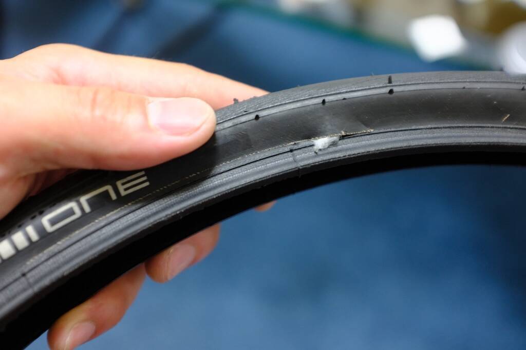 というのも先に書いたブロンプトンのパンク時のタイヤと同じ状況だったからです。ブロンプトンは4年近く使っていたタイヤなので私のメンテナンス不足に帰すのですが、こちらは先月納車したばかりの新車ほやほやのTyrell、私は1ヶ月で5000km走るようなイカれた豪脚の持ち主ではないのでせいぜい300km走ったかどうかくらいです。
