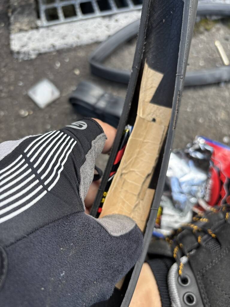 この時はタイヤの裏から絆創膏を貼ってそのままチューブを入れ、空気圧を普段より大幅に下げることで結果的にその後パンク無しで約200kmの走行が可能だったので、まだこの時点では絶望してはいませんでした。