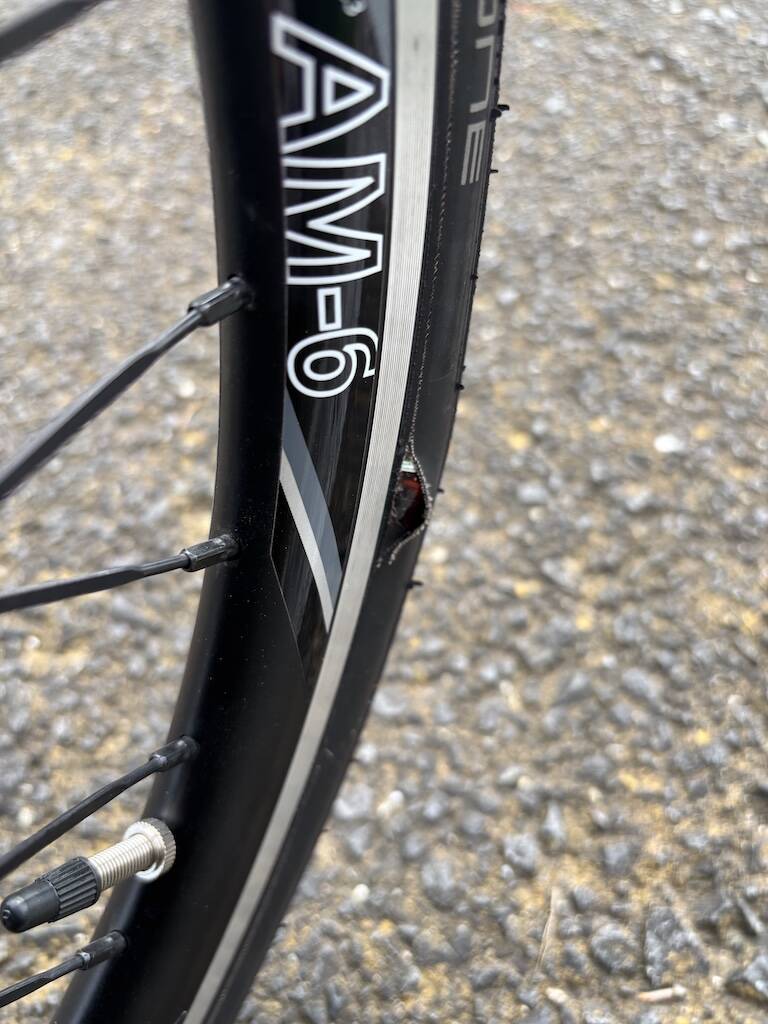 普通はパンクするにしてもじわじわと抜ける、鋭利なものを踏んだとしてもその場でプシューと抜ける、リム打ちなら段差を超えた瞬間に急速に抜ける、はずなので特に誘因なく突然銃声が鳴った時点で嫌な予感がしました。